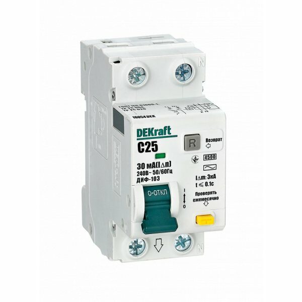 Автоматический выключатель дифференциального тока DEKraft 1Р+N 40А 30мА тип AC характеристика C ДИФ-103