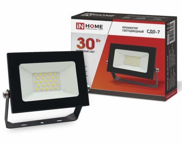 INHOME Прожектор сд СДО-7 50Вт 230В 6500К IP65 черный