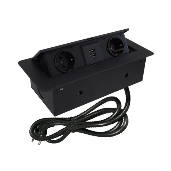 Розетка настольная AM-41Y-3EU-123EU, кабель 2м, Ami Socket для размещения в горизонтальной поверхности стола, столешницы, тумбы и другой мебели. В закрытом виде блок выглядит максимально эстетично. Розетка имеет привлекательный внешний вид и является оптимальным решением для размещения дома и в офисе.